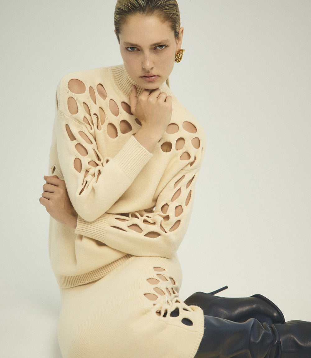 Un dialogo tra calore e struttura: la collezione celebra le Autumn Vibes, la stagione attraverso maglie scultoree e capi essenziali dal fascino senza tempo.