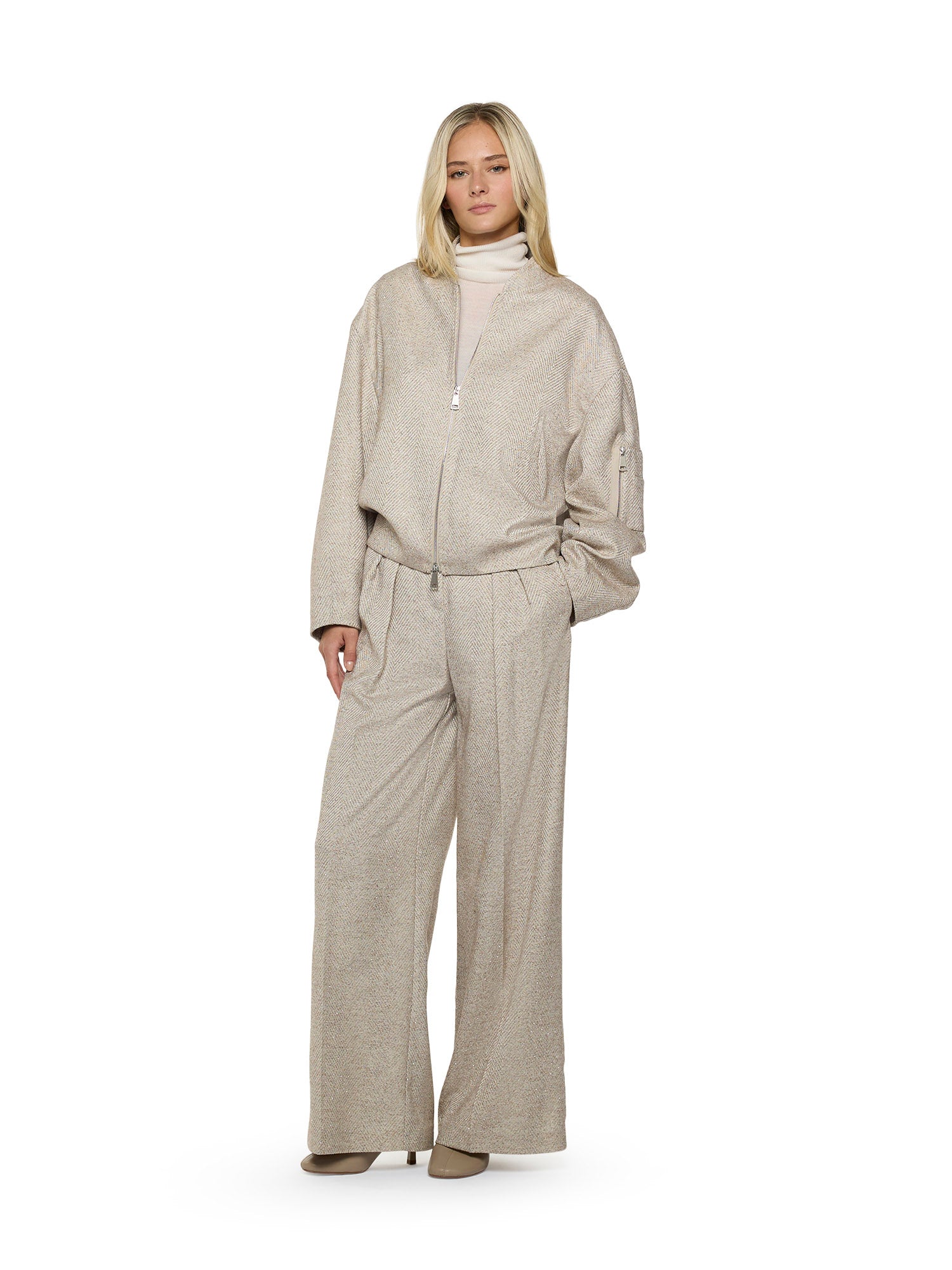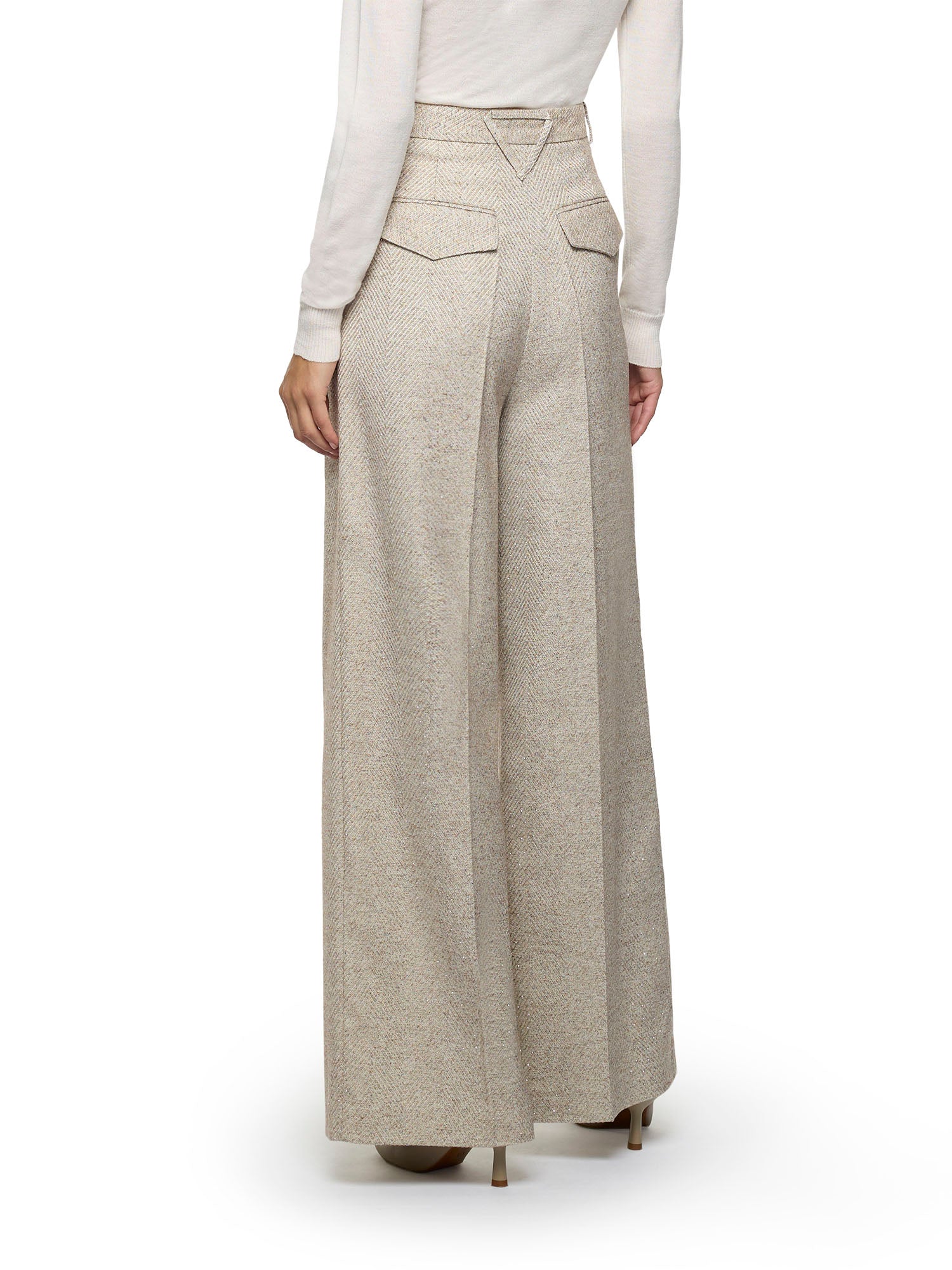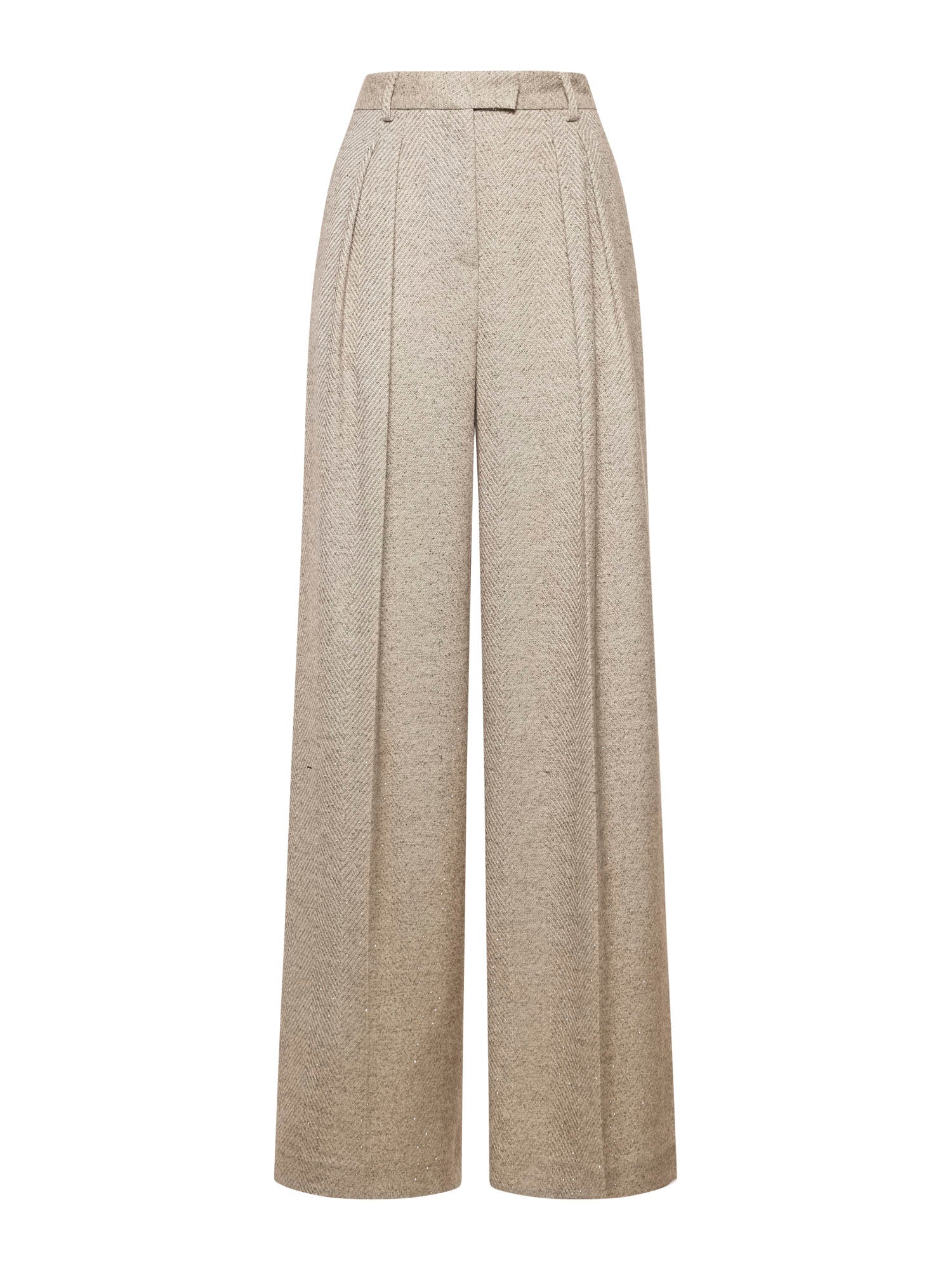 Herringbone fabric wide-leg trousers with rhinestones with belt loops