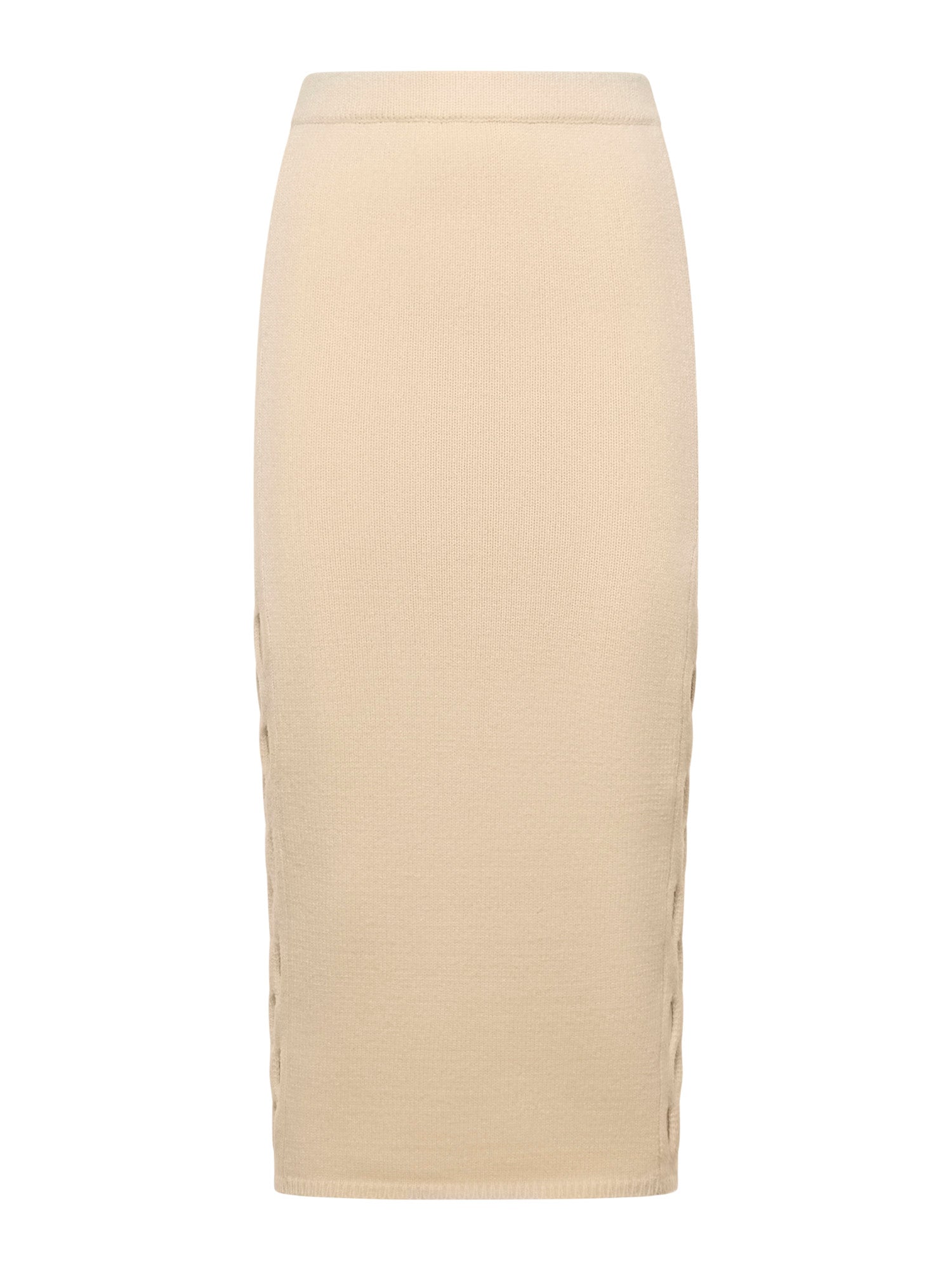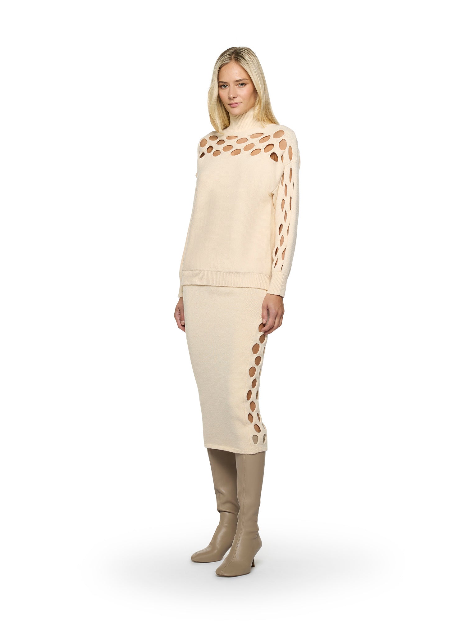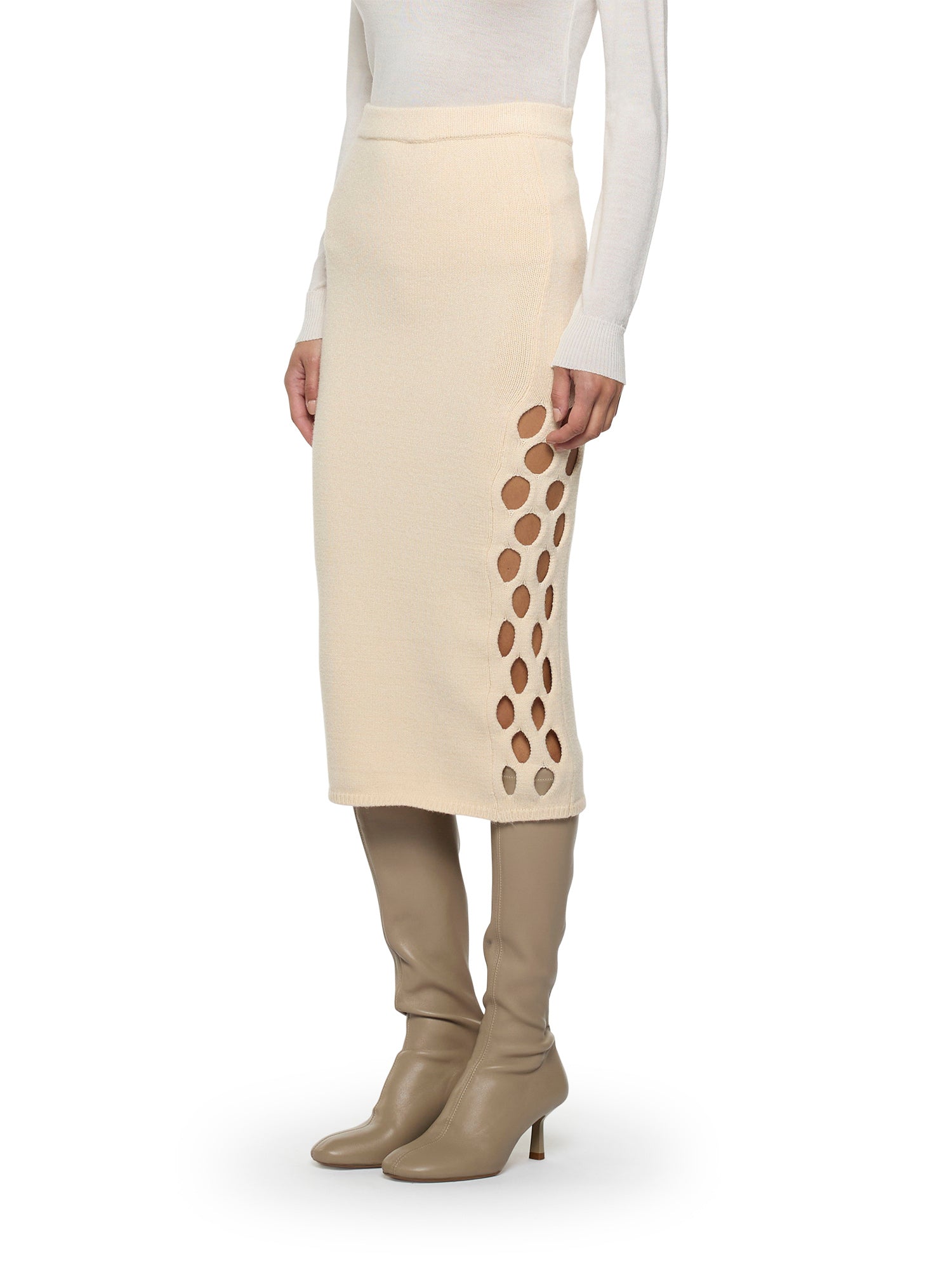 Ribbed midi skirt decorated with a lattice of cutouts along the sides.