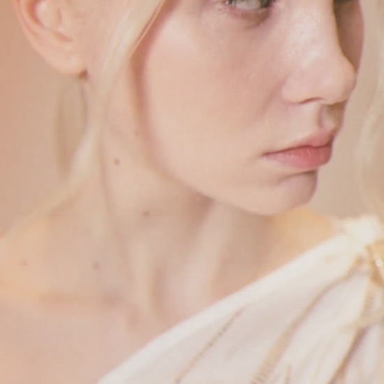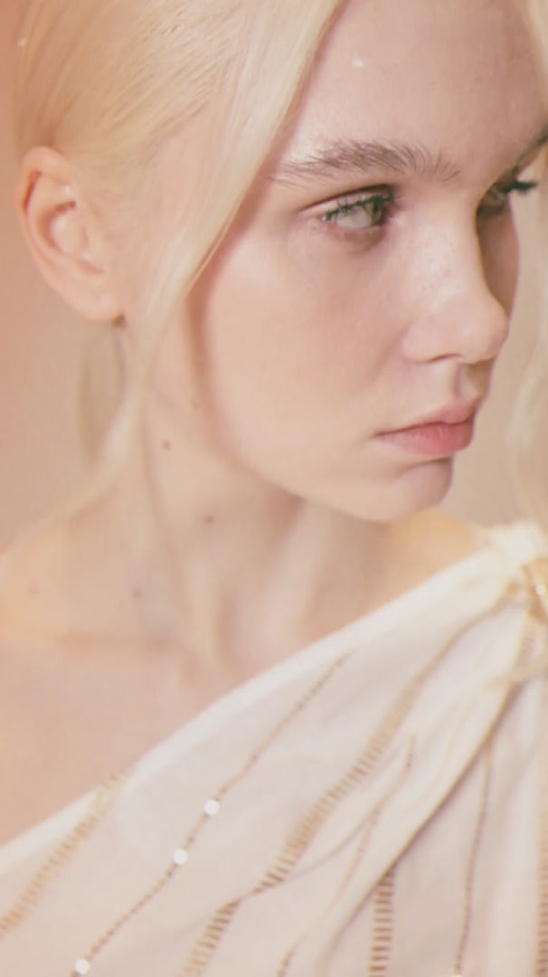 One-shoulder top with wide sleeve in embroidered muslin