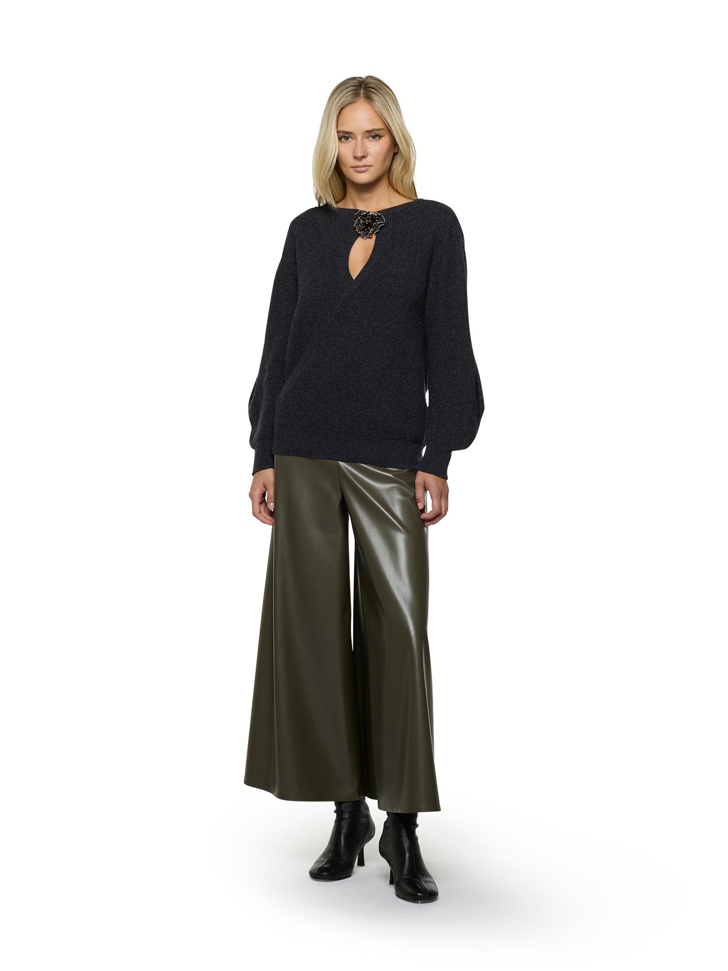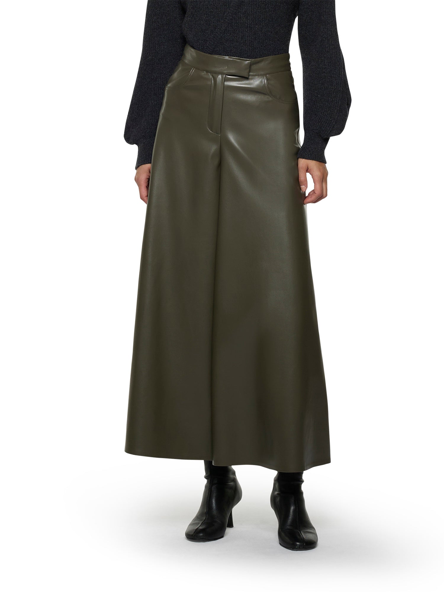 Wide-leg pant skirt in vegan leather
